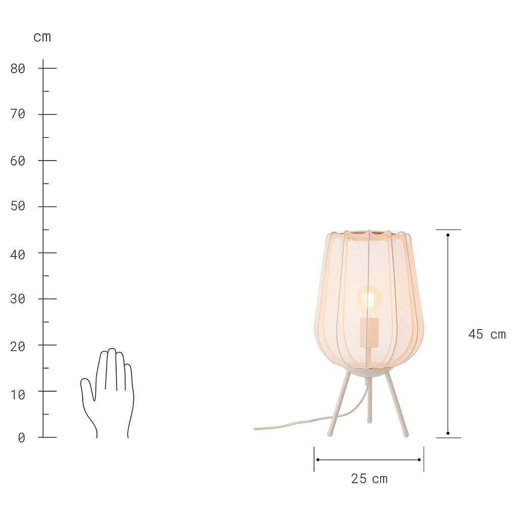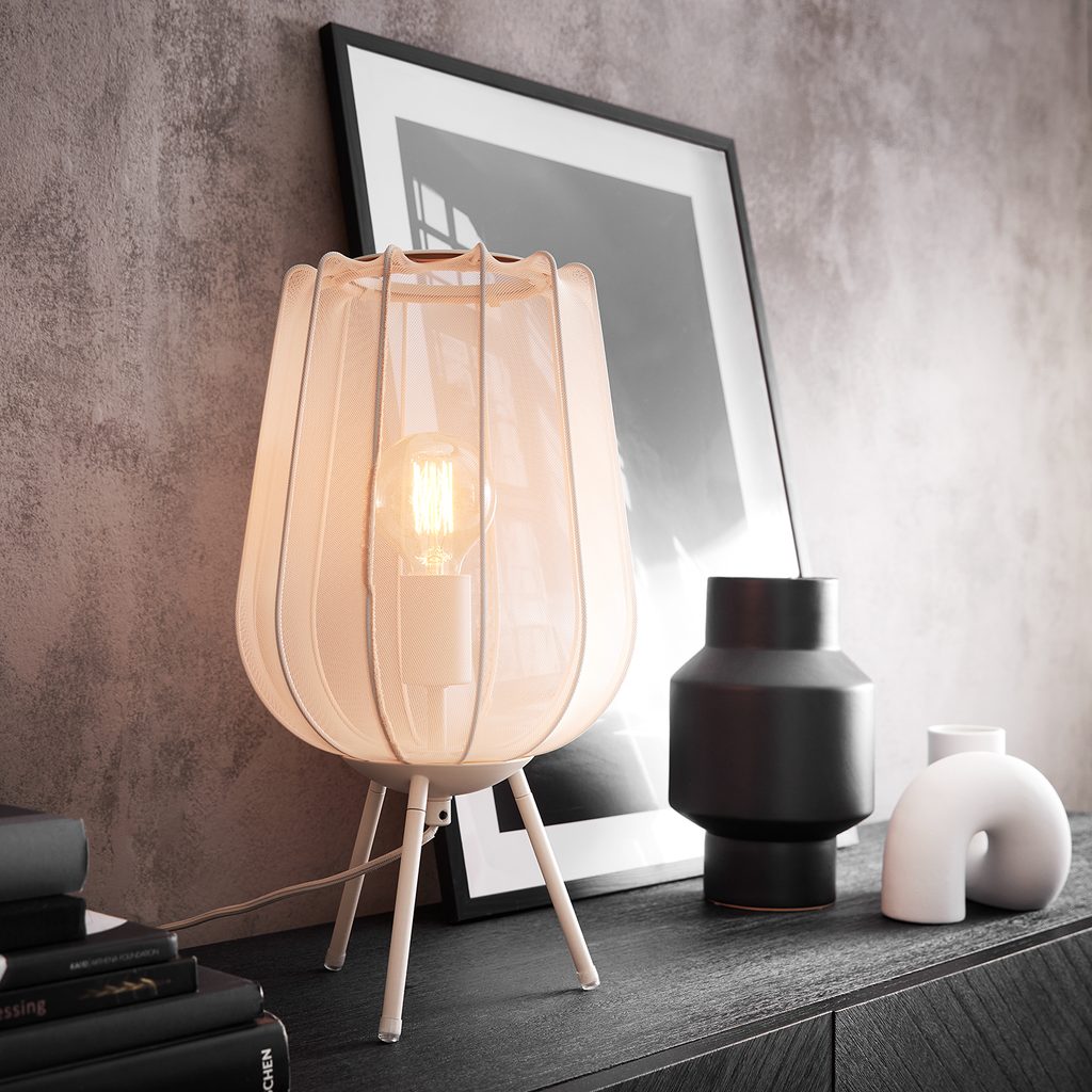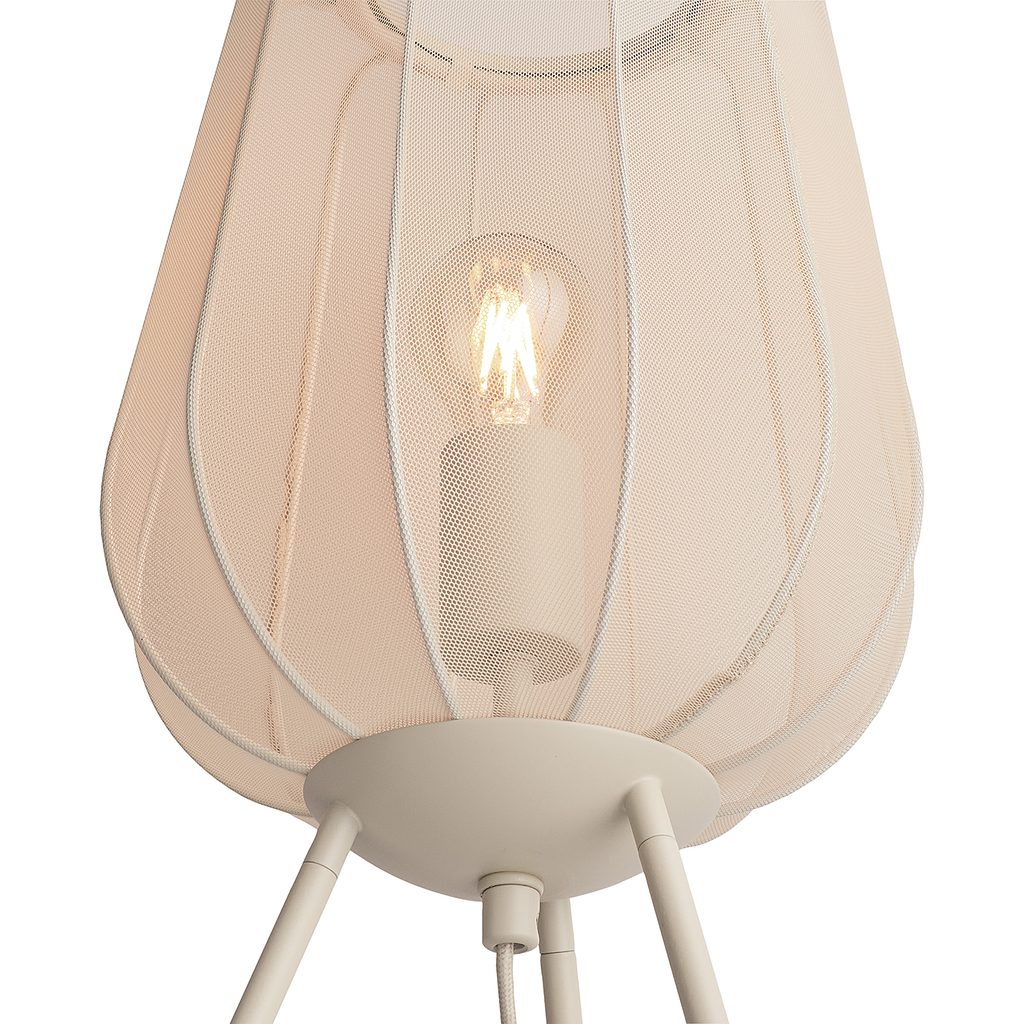 Az AMAL asztali lámpa egy csipetnyi extravagáns hangulatot csempész az otthonodba. Magas, ívelt árnyékolója átlátszó hálós anyaggal van bevonva és három vaslábon ül. Pontosan az exkluzív dizájn és a minőségi anyagválasztás kombinációja az, ami szinte titokzatos megjelenést kölcsönöz neki. Krém és fekete színben, valamint állólámpa és függőlámpa változatban is kapható.