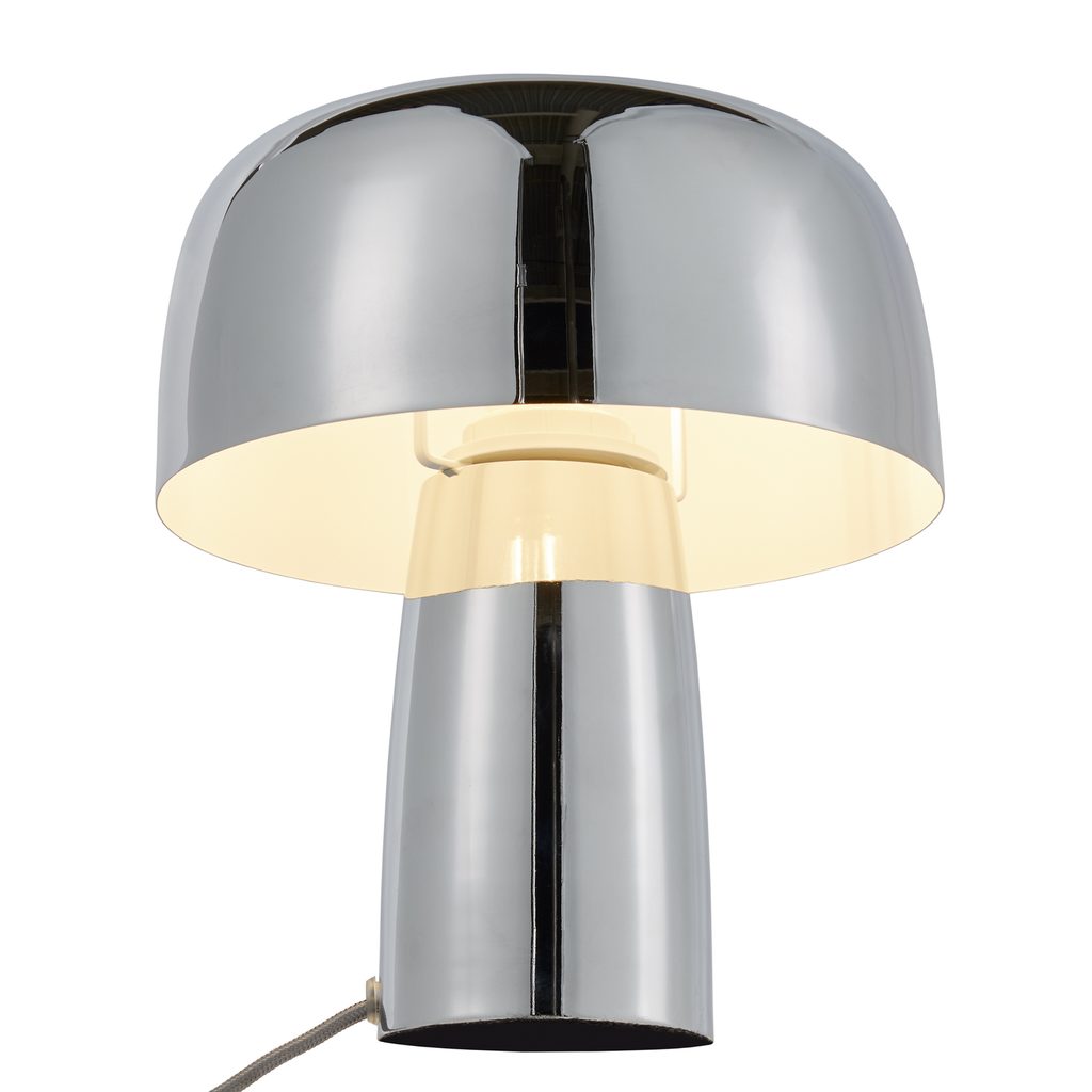 A LOOMY asztali lámpa modern formavilágával és fényes króm felületével igazi statement darab minden enteriőrben. A széles, kupola alakú búra és a hengeres talp letisztult, minimalista megjelenést kölcsönöz, miközben a tükröződő felület játékosan reagál a környezetére. Ideális választás íróasztalra, éjjeliszekrényre vagy hangulatvilágításként a nappaliba.