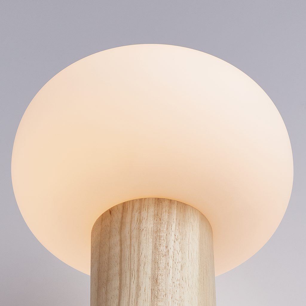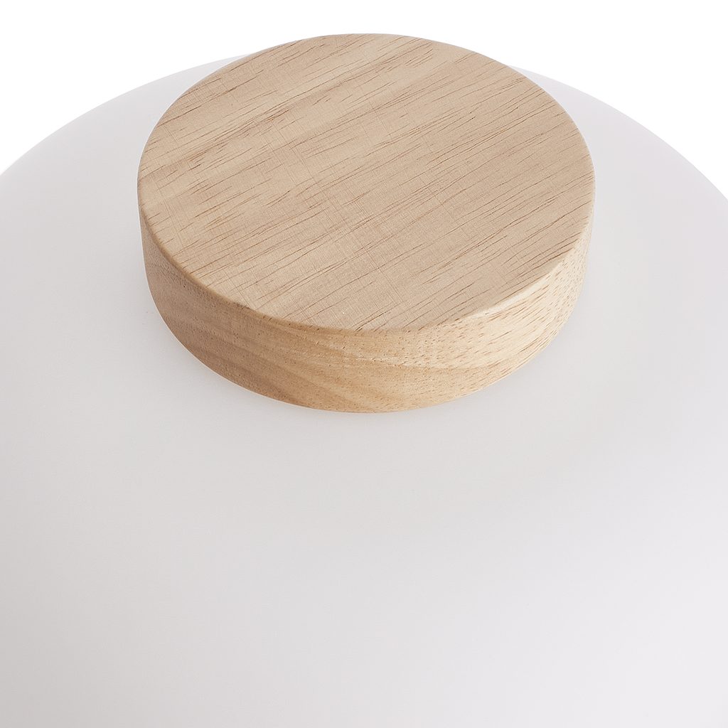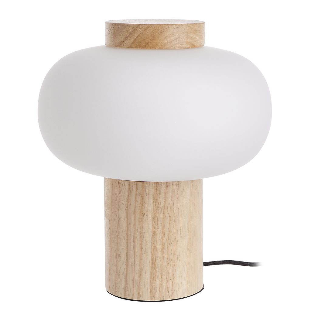 A fehér, matt üveg a természetes színű fával találkozik a modern TAAVI asztali lámpában, amely FSC®-tanúsítvánnyal rendelkező gumifából, megújuló alapanyagból készült. Sokféleképpen kombinálható és remekül mutat például a nappaliban vagy a hálószobában.