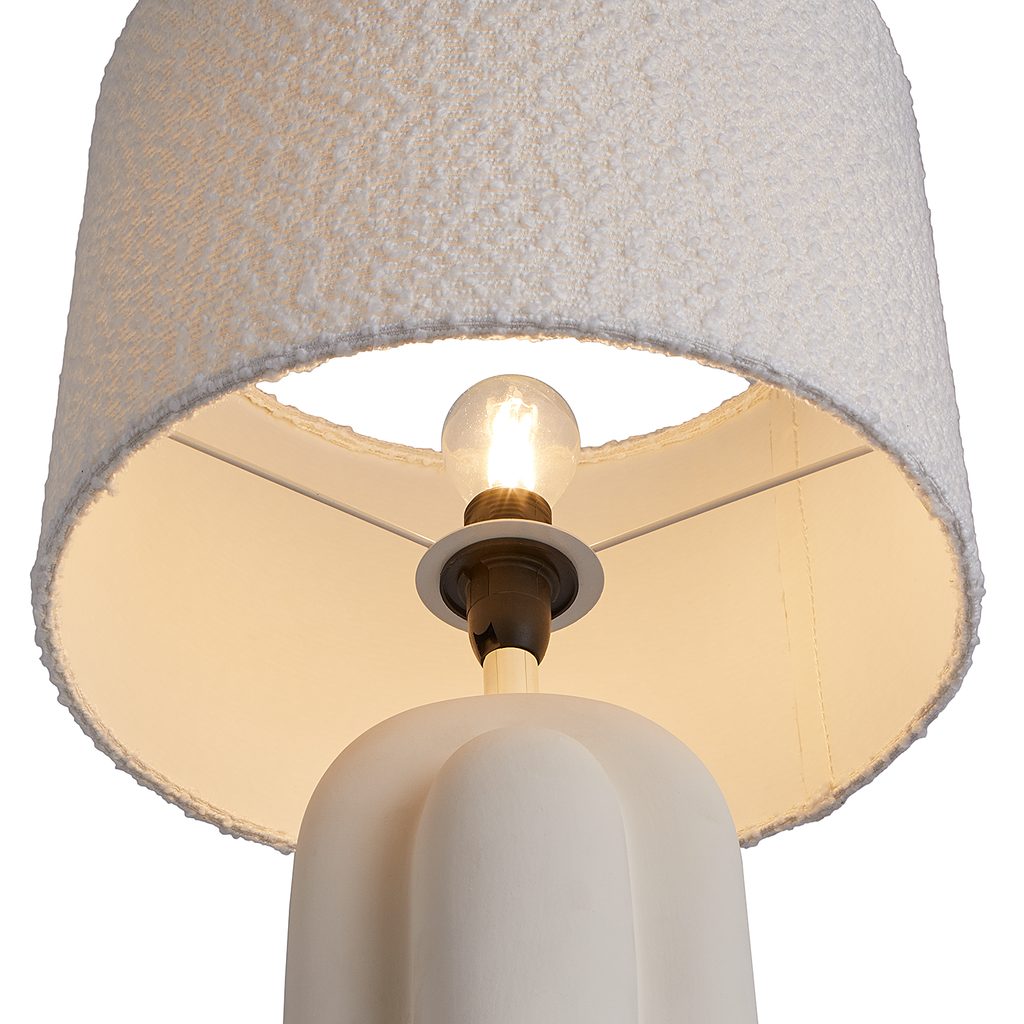 Divatos buklé szövet és kerámia lámpatalp ívelt formában: a tónusos TAKAO asztali lámpa a modernt a stílusos visszafogottsággal ötvözi.