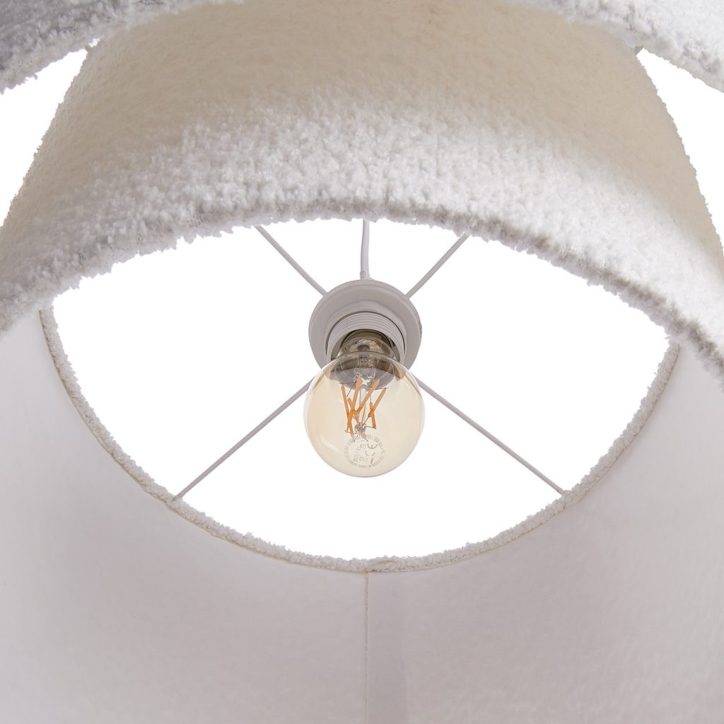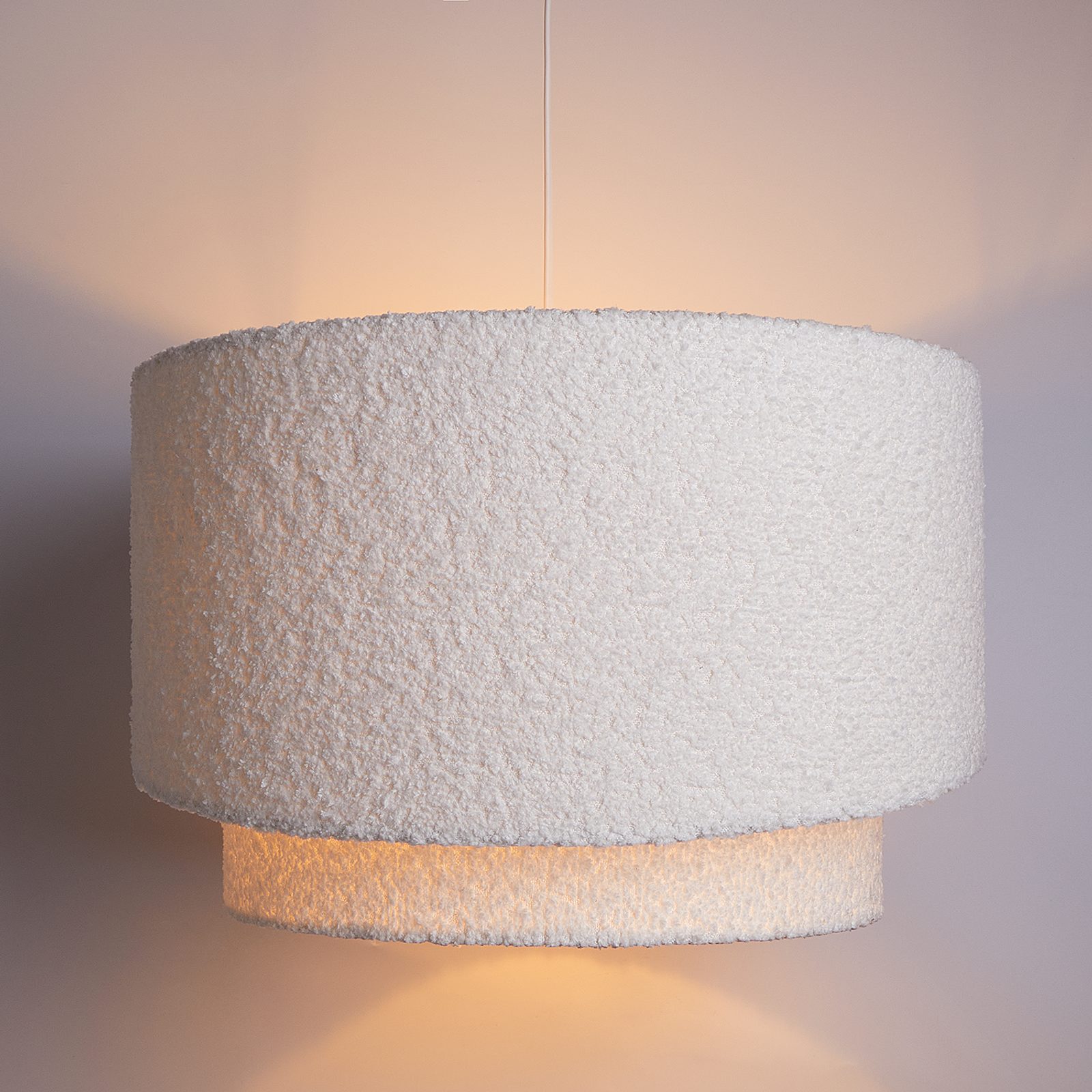 A texturált buklé szövet modern formával párosul a FONISSI függőlámpában, így téve a mennyezeti lámpát a divatos belső tér fénypontjává, akár a nappaliban, akár a hálószobában.