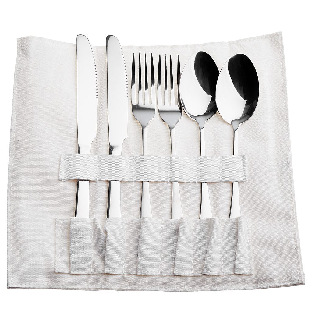 2 szett evőeszköz rozsdamentes acélból (kés, villa, kanál)