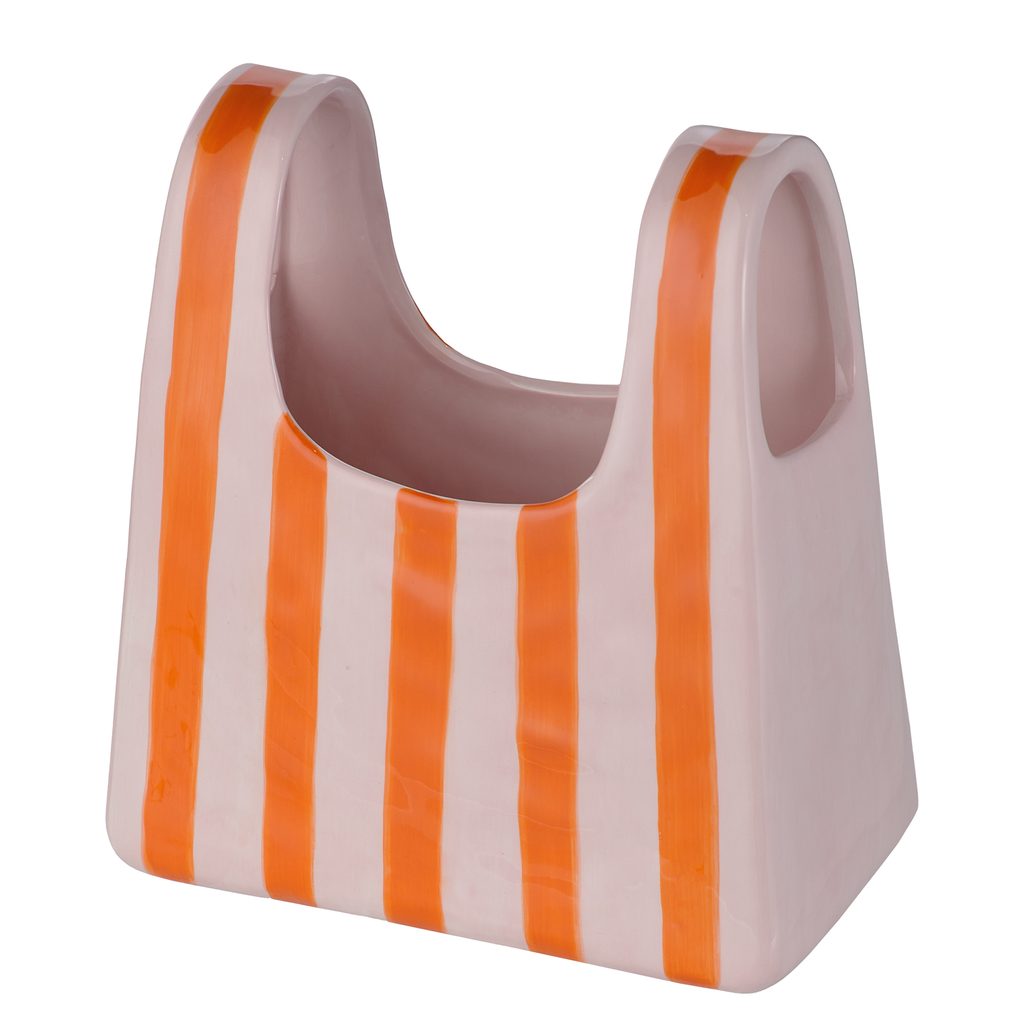A Shopping Bag kerámiaváza első pillantásra rabul ejt játékos, táskát idéző formájával. Csíkos mintája és különleges kialakítása úgy mutatja a virágokat és ágakat, mintha frissen egy butikból hoztad volna őket. Egyedi, dekoratív darab, amely bármely helyiségben stílusos hangsúlyt teremt.