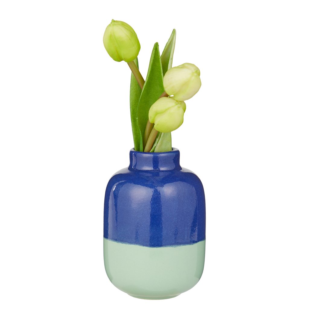 A Two Tone terrakotta váza megmutatja, milyen könnyedén teremtenek friss hangulatot a színek. A letisztult, modern forma tökéletesen kiemeli a mély kék és a lágy pasztellzöld találkozását, a kézzel ható máz pedig természetes, autentikus karaktert ad a darabnak. A Two Tone terrakotta vázák több méretben és különböző színpárosításokban érhetők el, így könnyedén kombinálhatók — akár egy megterített asztalon, akár az ablakpárkányon.